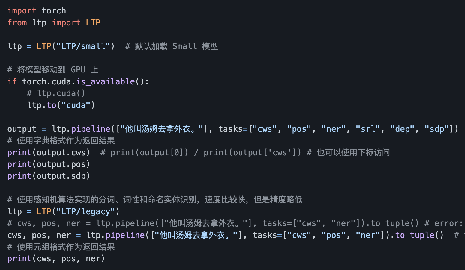 LTP 4LTP(Language Technology Platform) 提供了一系列中文自然语言处理工具,用户可以使用这些工具对于中文文本进行分词、词性标注、句法分析等等工作。引用如果您在工作中使用了 LTP,您可以引用这篇论文@inproceedings{che-etal-2021-n,title = N-{LTP}: An Open-source Neural Language Technology Platform for {C}hinese,author = Che, Wanxiang andFeng, Yunlong andQin, Libo andLiu, Ting,booktitle = Proceedings of the 2021 Conference on Empirical Methods in Natural Language Processing: System Demonstrations,month = nov,year = 2021,address = Online and Punta Cana, Dominican Republic,publis