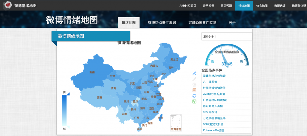 报奖团队基于研发的语言情感智能分析技术,开发了微博情绪地图和产品评论分析演示系统。微博情绪地图可以对重大活动(如“9.3大阅兵”)中的微博用户情感进行实时分析和展示,为政府了解网民情绪,分析情绪产生的原因提供技术支持,有很大的社会效益。产品评论分析演示系统可以将非结构化的评论文本转化为结构化的情感信息数据库,进而为评论文本信息挖掘、用户情感原因发现、产品分析与优化等应用提供关键技术支撑。报奖团队还与国内的多家知名互联网企业进行项目合作,如腾讯、搜狗、华为等公司。此外,还协助一些其他非互联网企业进行人工智能+的合作,如华策影视、招商银行等,产生了很大的商业价值。