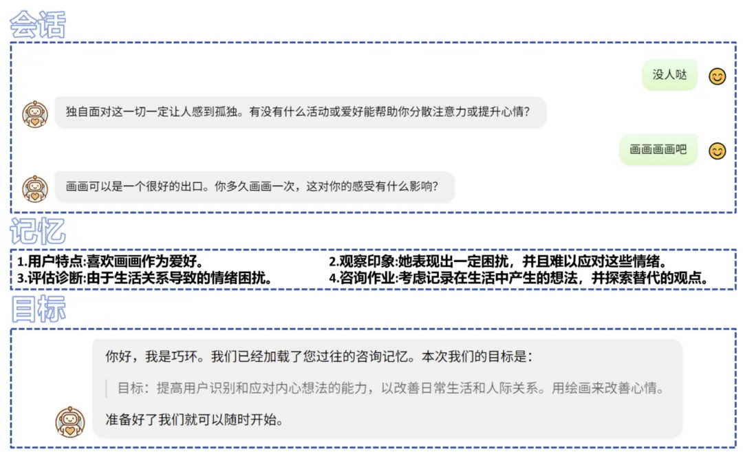 哈尔滨工业大学社会计算与交互机器人研究中心情感计算组(HIT-SCIR-SC)依托多年情感计算和人机交互研究成果,正式推出智能心理支持系统——“巧环”!它基于认知行为疗法(CBT)、希尔人际过程(Hill)、焦点解决短期治疗(SFBT)等理论,集心理学专业问诊、共情对话与长期个性化心理咨询于一体,致力于提供全面的、可信赖的心理健康支持。
