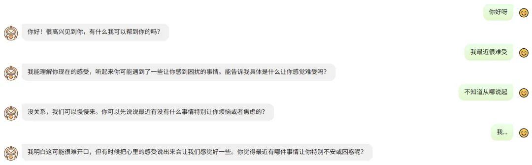 共情对话: 具备高度共情能力,在安全、信任的交流中,引导您自然表达。