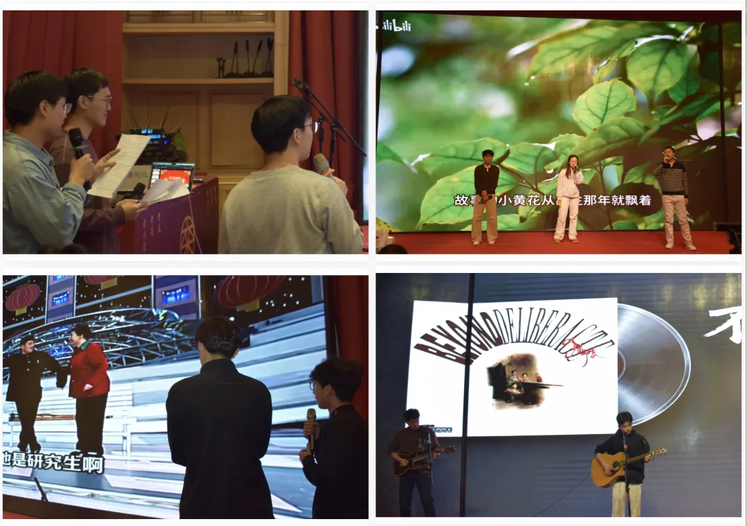 远程祝福结束后,总结会随即进入文艺表演阶段。来自各研究组的同学们轮番登台,以歌声、舞蹈、器乐、朗诵与情景演绎等丰富多样的节目形式,展现了科研之外的青春活力与多才多艺。台上精彩不断,台下欢笑连连,现场气氛在一轮轮表演中持续升温。一个个精心准备的节目,不仅为大家带来轻松与愉悦,也让师生在繁忙的科研节奏中短暂放松、增进交流,共同留下一段温暖而难忘的年末记忆。