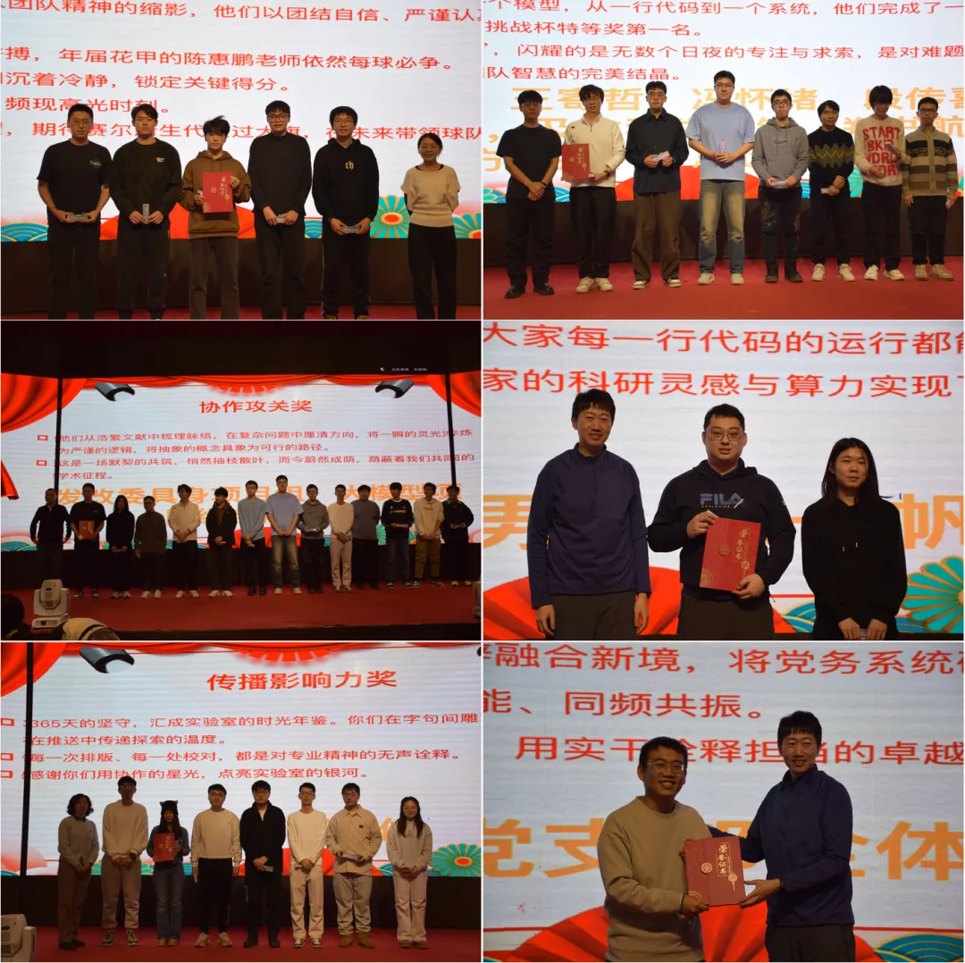 篮球队全体获得灌篮之星奖,王雪松、王寄哲等人获得挑战之星奖,具身项目组、大模型项目组全体同学获得协作攻关奖,管健男、陈一帆获得网络护航奖,编辑部全体获得传播影响力奖,党支部全体获得红色领航奖。