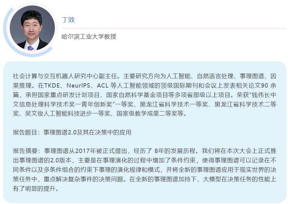 本次论坛重点探讨事理图谱与决策智能的相关重要科学问题、关键核心技术以及未来发展方向。提出事理知识如何表示和构建、事理知识如何与大模型进行结合以及事理知识如何增强大模型复杂问题决策能力等问题。事理图谱论坛在21年CNCC大会上举办过一届,吸引了200余位观众,相信本次论坛可以吸引更多学术界、产业界人士注册参会。