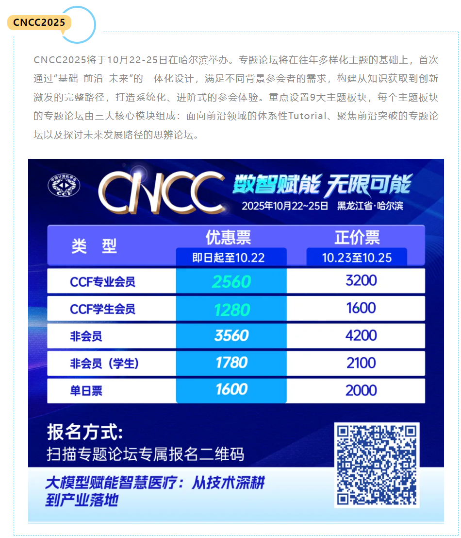 注:如有变动,请以官网(https://ccf.org.cn/cncc2025)最终信息为准